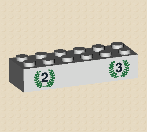 White Brick 2 x 6 with Numbers 2 and 3 in Green Laurels Pattern