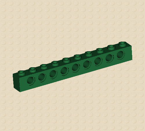 Green Technic Brick 1 x 10 with Holes