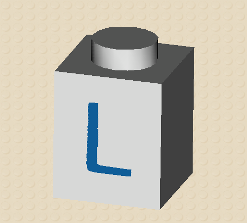 White Brick 1 x 1 with Blue ‘L’ Pattern