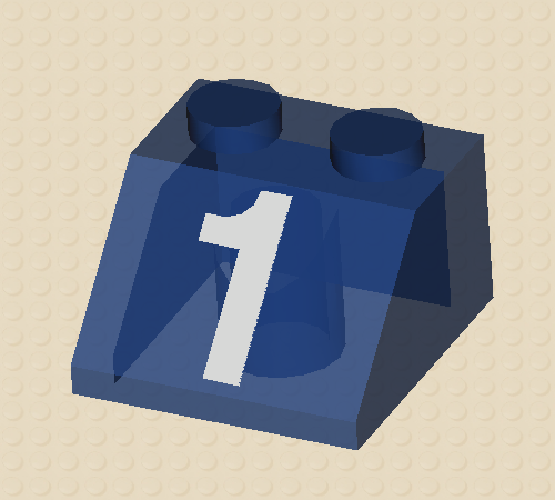 Transparent Blue Slope 45 2 x 2 with White Number 1 Pattern