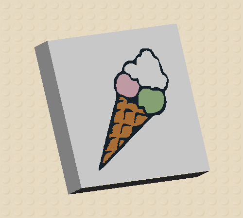 White Tile 2 x 2 with Ice Cream Cone Pattern