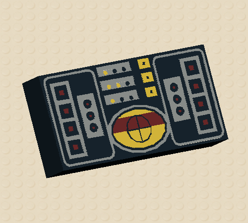 Black Tile 1 x 2 with Avionics SW Copper