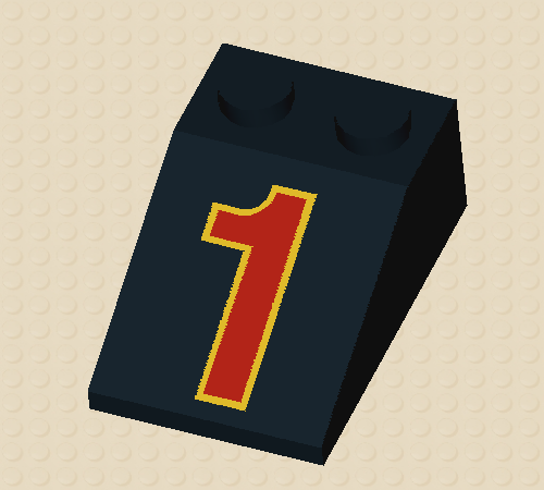 Black Slope 33 3 x 2 with Red Number 1 and Yellow Trim Pattern