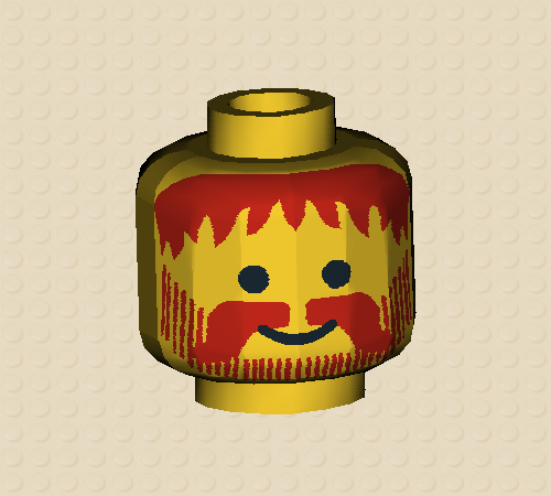 Minifig Head, Standard Grin with Red Messy Hair, Moustache, and Vertical Lines Beard Pattern – Blocked Open Stud, aka 3626px22