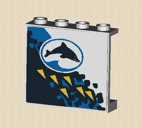 White Panel 1 x 4 x 3 with Oval and Dolphin Facing Right Pattern