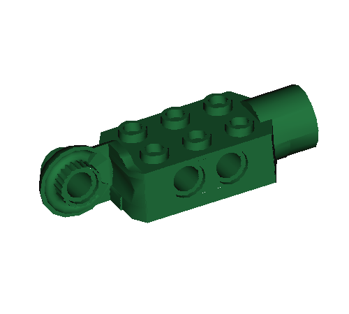 Green Technic, Brick Modified 2 x 3 with Pin Holes, Rotation Joint Ball Half Vertical, and Rotation Joint Socket